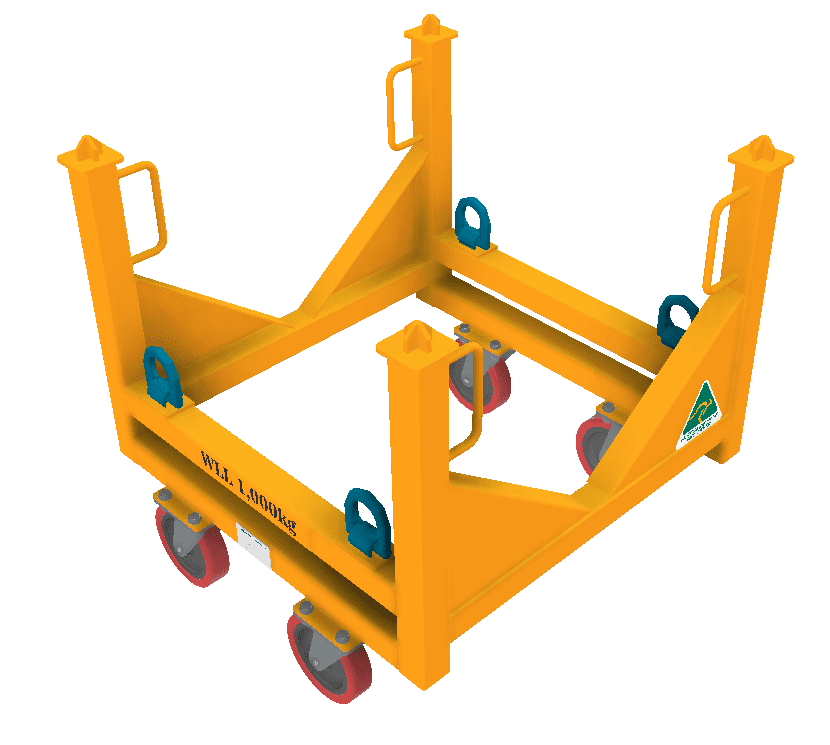 WLL 1T Ext Dimensions L 750 W 750 H 745 Includes 4x Component Lash Down Positions 4x Swivel Castor Wheel Options 250kg 4x Handle Positions Certification & Identification Plaque Finish Spec Painted Or Galvanized Compliance AS3990 & ISO9001 Custom Sizes Available POA